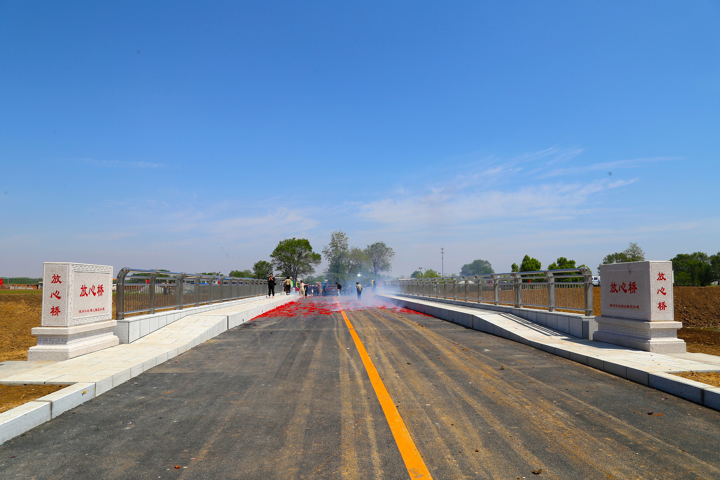 放心橋工程,牽動(dòng)著鄉(xiāng)村百姓的心,村民們每天去施工現(xiàn)場(chǎng),盼望著早日開通;牽動(dòng)著市、鄉(xiāng)領(lǐng)導(dǎo)的心,市委書記親自現(xiàn)場(chǎng)調(diào)研,期盼早日解決百姓之急,也牽動(dòng)著薄曉放董事長(zhǎng)的心,他多次現(xiàn)場(chǎng)拉練檢查,確保每個(gè)環(huán)節(jié)精益求精,既修建大橋,疏通道路,提供便利;又治理河道,加固堤防,保障安全;并在村內(nèi)沿路綠植7余種樹共計(jì)500多株,4余種花共計(jì)37000多株,美化家鄉(xiāng)環(huán)境。