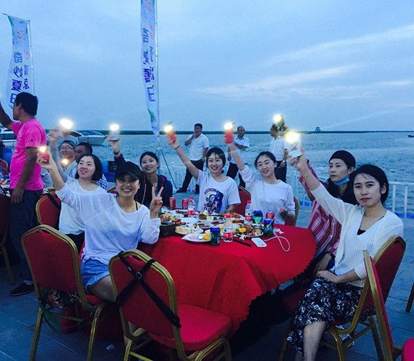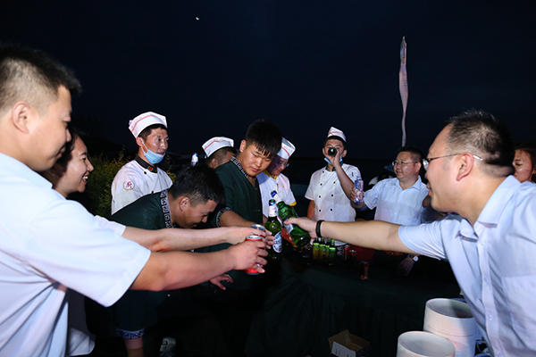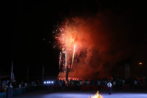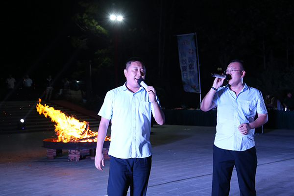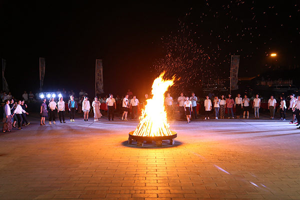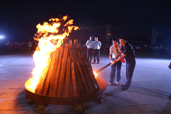 領導為大家點燃篝火